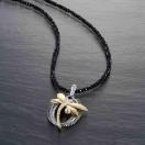 ブラックスピネルの多面カットが美しく輝き、勝利をイメージさせる「トンボ」がスワロフスキークリスタル、アコヤ真珠と共にエレガントにデザインされています。