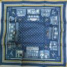 ☆ネイビー、ブルー、イエロー、ホワイトの色合いと、柄もエルメスの特徴が目立つスカーフになります。