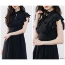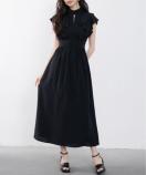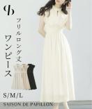 SAISONDEPAPILLONアイボリーシフォンフリルロングワンピースアイボリー肩幅カバー二の腕カバーデートオケージョンデイリー結婚式パーティーエレガントセゾンドパピヨン