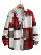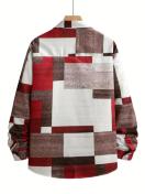 メンズカジュアル幾何学プリント長袖シャツ - ポリエステル、ボタンアップ、襟付き、春/秋の外出に最適