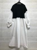 綿混ニットベスト×シャツワンピの