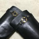ベルトにモノグラムのフラワーモチーフが付いたブーツです。