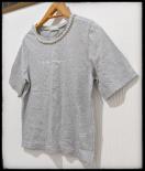 色は灰色で胸にアルファベットのプリントあります。サイズはFサイズ表示です。