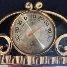 ゴールドの装飾と温度計が特徴のミラー。