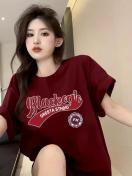 レディース Y2Kスタイル 純綿 ルーズフィットTシャツ - かわいいキャラクターグラフィックプリント ロングトップ 春夏秋 カジュアルウェア ラウンドネックシャツ ソフト素材ティー
