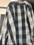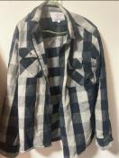 ブラック・ホワイトのチェック柄ネルシャツ、Lサイズ、ポケット付きで実用的。