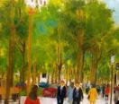 抽象表現主義から具象画に転向して久しく、身近な街景、ア−バンライフを主題に明快な筆致で描いております。モバオクで "袖振り合うも多生の縁" 宜しくお願い致します。