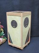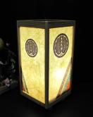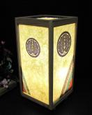 粗目和紙の温もりを背景に、家紋を載せた「和風ランプシェード」です。