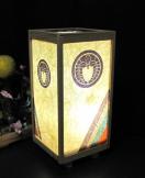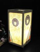 粗目和紙の温もりを背景に、家紋を載せた「和風ランプシェード」です。
