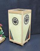 粗目和紙の温もりを背景に、家紋を載せた「和風ランプシェード」です。