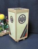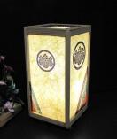 粗目和紙の温もりを背景に、家紋を載せた「和風ランプシェード」です。