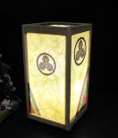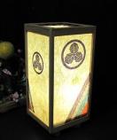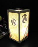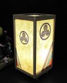 粗目和紙の温もりを背景に、家紋を載せた「和風ランプシェード」です。