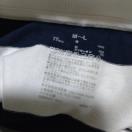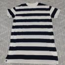 無印良品、白とネイビーのストライプデザインの半袖チュニック丈ワンピース、M-Lサイズ、ポリエステル素材。