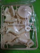 こちらは未組立品ですがかなり昔に購入した商品でバイクの方のハンドルのパーツが折れています。