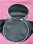 厚手の合皮素材で、フタ裏とメイン収納部分にメッシュポケットがあります。
