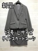 新品☆13号Lサイズ♪グレー系ストライプ♪タイトスカートスーツ☆Q421
