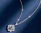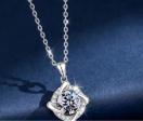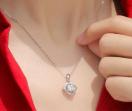 シルバー仕上げのローズモチーフペンダントにクリスタルを使用したエレガントなネックレス。