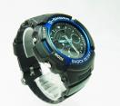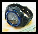 耐衝撃構造で人気のG-SHOCKシリーズ「AW-591」モデルの腕時計です。ブラックとブルーのコンビネーションがスポーティでスタイリッシュなデザイン。アナログ×デジタルのコンビネーション表示で、実用性とデザイン性を兼ね備えています。