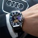 メンズ自動機械式腕時計 - 高級バレル形状ケース、ゴールドトーンのスケルトンダイヤルと青い針、電池不要 - フォーマル&カジュアルな服装にエレガントな時計 - 男性への理想的なギフト - 耐久性のある構造、ビジネスリストウォッチ、高品質素材、スタイリッシュな腕時計、プロフェッショナルアティア