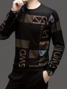 メンズレター&幾何学模様プリントスウェットシャツ、カジュアルトレンド長袖プルオーバーギフト