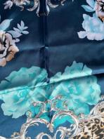 上質な光沢と肌触りが魅力のタイシルクの大判スカーフです。鮮やかな色合いと大胆な花柄のデザインが美しく、コーディネートのアクセントになります。