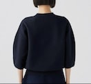 やや厚みがある生地感で、首元は詰まったシルエットです。初秋や、春にオススメです。