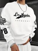 メンズ オーバーサイズ ロサンゼルス グラフィック スウェットシャツ - ソフト ポリエステル プルオーバー LA レタリング & ナンバー 18 デザイン、リラックスフィット カジュアル ストリートウェア、カジュアルウェア、スポーツイベント & LA テーマのアウトフィットに最適、ラウンドネック ルーズフィット ボールド LA プリント、洗濯機対応 アーバンスタイル メンズ、快適なポリエステルブレンド生地でレイヤリングに最適、カジュアルな外出やソーシャルイベントに理想的なアイテム
