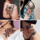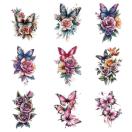 STARTTOOS 9枚 防水 一時的な タトゥーステッカー ビビッド ローズ バタフライ フローラル ボディアート アソートカラー 長方形 腕 脚 腹部 背中 パーティー用品