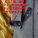 ★こちらなんと!数通りの着方が可能です!襟、袖のところ、後ろの黒のファー部分(フェイクファー)ですが、裏側が本体柄と同じチェック柄になっています!なので、反対側にして着ることも可能です!それと襟のファー部分を外して(画像3)着ることも可能!なので、その時によって変えて着れるのが最高です!!