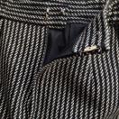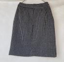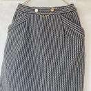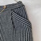 黒と白のストライプデザインのペンシル タイトスカート、ゴールドのチェーンがアクセント。