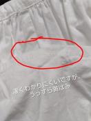 出品時改めて検品したところ後ろ側の裾に黄ばみシミがありました。裾のフチ折り返して縫ってある部分がシミになっています。後で写真載せます。シワ有り。