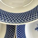 昭和レトロなバラ柄の浮き彫り模様の格子柄がおしゃれな多目的な電子レンジ対応のお皿になります。