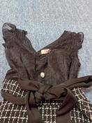 レースとツイードのコンビネーションで、ウエストリボンが特徴のエレガントなナイトドレス。