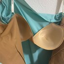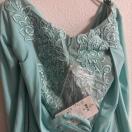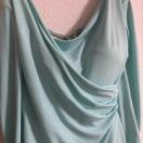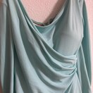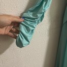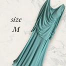 ミントグリーンのドレープデザインの社交ダンスドレス、サイズM。