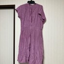 パープルのシャツワンピース、半袖デザインでカジュアルな着こなしに最適です。