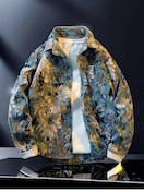メンズ エレガントジャケット ボタンフロント フォーマル オールシーズン カジュアル オフィス イベント用 コート 洗濯機可 ノンストレッチ クラシックフィット アーティスティック刺繍 透けない スタイリッシュアウター 耐久性 ボタンアップシャツ ファッショナブル