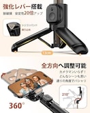 4~7インチのほぼ全ての機種に対応。付属のマルチアダプターで特殊形状ケースもOK!270°可動式アームで、ローアングルから俯瞰ショットまで自由自在。1台で自撮り棒・カメラ用三脚・ビデオスタンドの3役をこなす万能選手です。