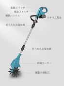 家庭用ユーザー向けに設計されており、三畳み式の革新的な構造を採用しています。折りたたんだ状態での全長はわずか50センチメートルで、収納時にスペースを取らず、外出時の持ち運びも容易です。空間利用と移動性への配慮が十分に反映されたデザインと言えます。 操作面では、長時間作業時にスイッチを押し続ける必要がある課題に対応するため、起動スイッチと補助スイッチのデュアルスイッチシステムを最適化しました。起動スイッチを押すだけで機械が作動します, 続いて補助スイッチを押すと自動的にロックされ、起動スイッチを押し続ける必要なく連続運転が可能です,停止時には起動スイッチを軽く押すだけで、機械は即座に停止します。これにより、操作の快適性と能率が大幅に向上しており、家庭内の菜園管理やガーデニング作業をスムーズにサポートします。