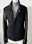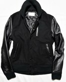 ショールカラー的な襟が特徴のスタジャン型でレザーが使われている事からライダース的な雰囲気も