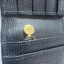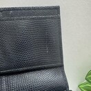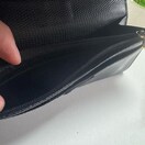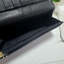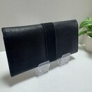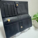 スリムなデザインのブラックレザー長財布、カードポケット付き。