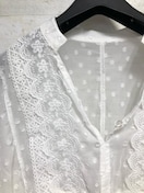 新品☆LL♪シアーレースブラウス&消しプリーツスカーチョ♪☆Q411