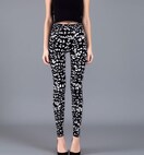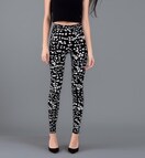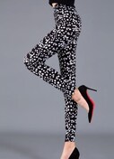 不規則に配置された水玉柄のレギンスパンツ。