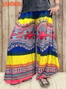 カラフルなアフリカン柄の楽々ワイドパンツです。