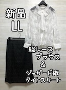 新品☆LL♪総レースのタイブラウス&ジャガード織タイトスカート☆Q412
