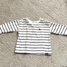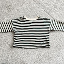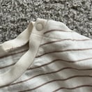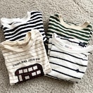 9枚目の紺のボーダーはタグに名前シールを貼っていたので少しべたつきますが、タグを切ってしまえば大丈夫だと思います?