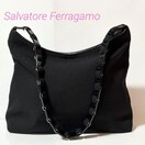 美品 Salvatore Ferragamo フェラガモ ヴァラ チェーン ナイロン ワンショルダーバッグ