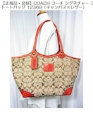 【正規品・良好】COACH コーチ シグネチャー ショルダートートバッグ 12369(キャンバス×レザー/肩掛け可)
