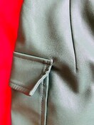 前→ファスナー、ホック付き、両脇→ポケット付き