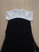 ボリュームのあるチュールとTシャツのドッキングワンピース。