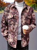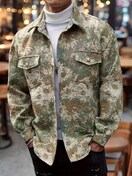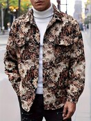 【メンズ】プレッピースタイル ルーズフィット ジャケット - ソフトシェル ボタンアップ ポケット付き、全面プリント、長袖、カジュアル&万能 秋/冬向け、選べる豊富なカラー、カジュアルアウター | リラックスフィット ジャケット | ノンストレッチ生地